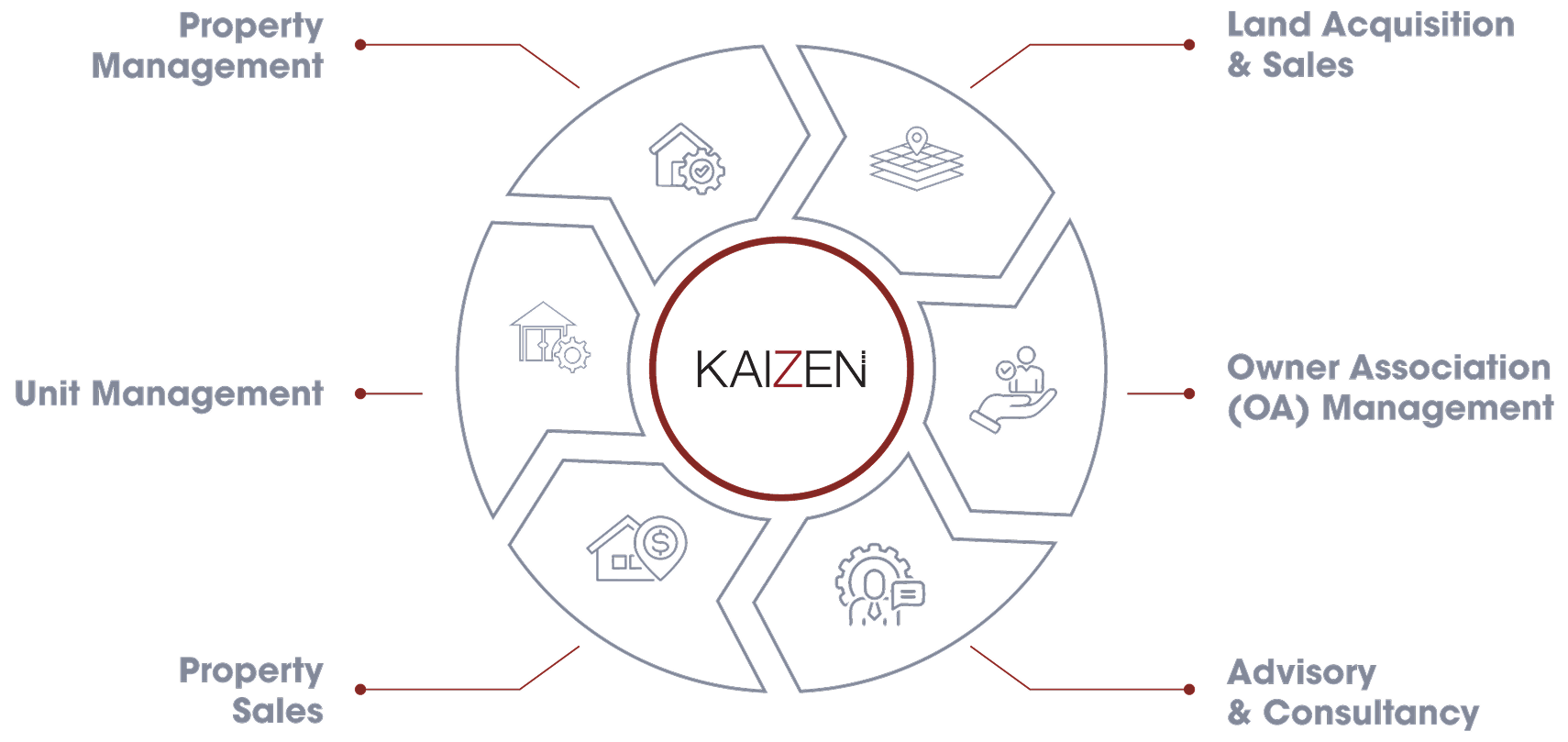 We deliver integrated property services that increase asset value and quality of life by connecting experience, performance, sustainability, and data across the full real estate lifecycle, making KAIZEN the UAE’s most trusted, tech-enabled, and customer-first asset management partner.